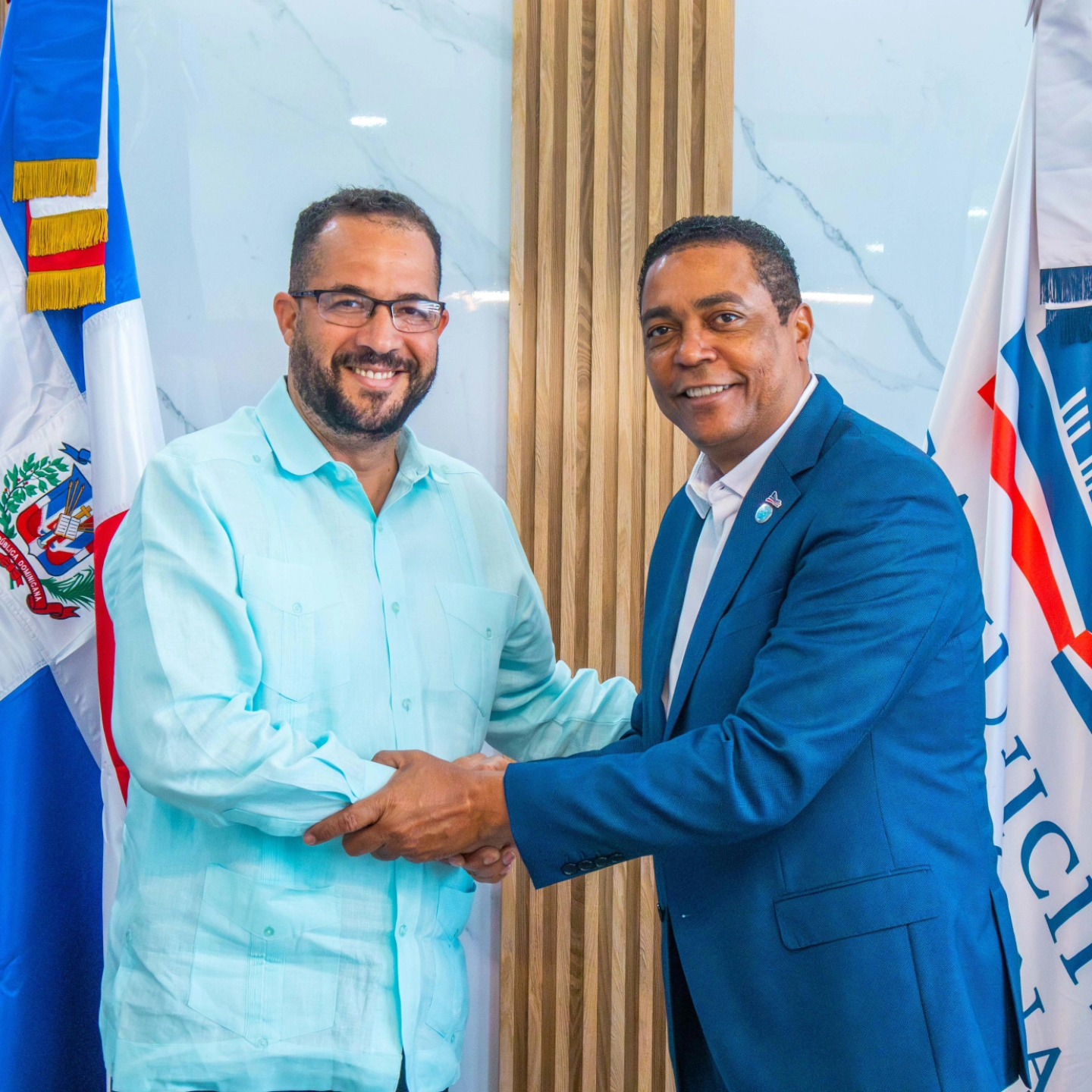 El alcalde Domingo Suzaña Abreu giró este jueves una visita de cortesía al presidente de la Liga Municipal Dominicana (LMD), Lic. Victor D’Aza, la que aprovecharon para socializar diversos temas de interés para el municipio.