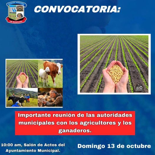 La Alcaldía de Bohechío convoca a importante reunión de las autoridades municipales con los agricultores y los ganaderos.